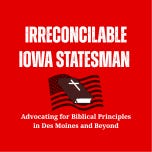 Adam Steen, who now seeks to be our next Governor, was unwilling to take even the first steps towards protecting Iowan’s Capitol Building. Even if he did not have the courage to pitch Sherman’s bold arguments to the world, he could have denied all displays or take a myriad of other routes to defeat it rather than playing dead.